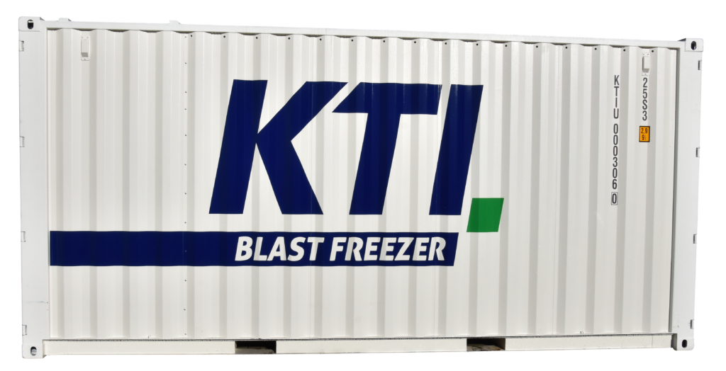 The container solution from KTI is another Premium product in the form of a blast freezer for industrial applications. The plant is according to industrial standards have been developed. Thus, components that are well-known in plant construction in the industrial environment are used: stainless steel evaporators, welded steel lines, GRP shock protection, etc. are used here. This results in an extremely more robust and durabler blast freezer emerged. A easy operation and maintenance make the blast freezer, which is installed completely ready to plug in, a perfect solution when it comes to Fastest freezing of high-quality products.