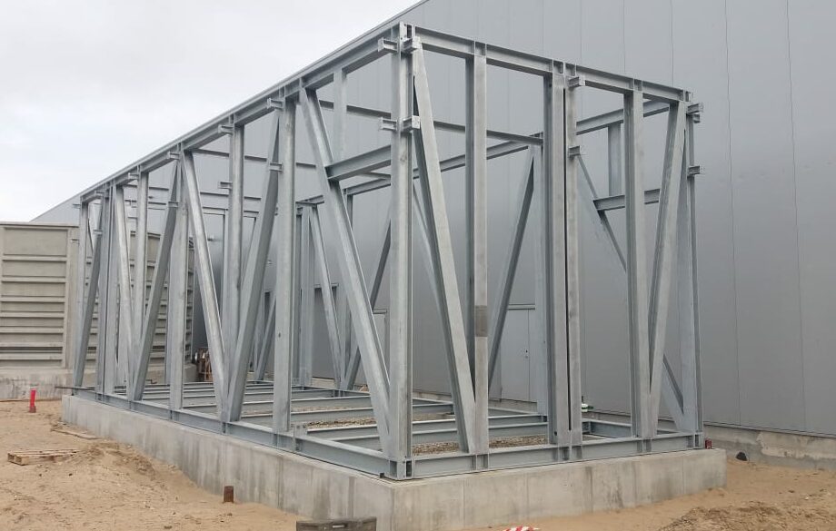 The one on the high loads The steel frame of KTI, designed for the entire installation, is placed on the prepared concrete or strip foundation. The steel frame provides the Suitable heightto process the ice properly and to convey it out of the ice storage. On this steel frame then sit the other elements of the plant such as: