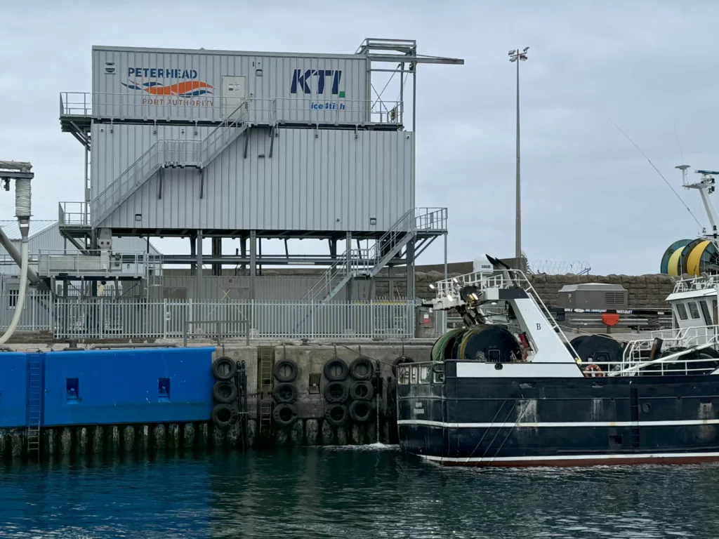 In 2024, we installed a flake ice system for Europe’s largest fishing port in Peterhead, Scotland. With annual fish landings valued at over £230 million, the necessity of ice for maintaining fish quality the port’s outdated ice plants could no longer cope with the ice demand. The provision of the new flake ice plant will ensure the future viability of the local fishery and the fishing industry in general. We at KTI were able to convince the Peterhead Port Authority with our unique expertise in the manufacture of systems for ice production, ice storage, ice weighing and ice transportation. Attention was also paid to the use of the highest quality components and materials during the engineering phase. The result: a flake ice plant that far exceeds all industry standards.